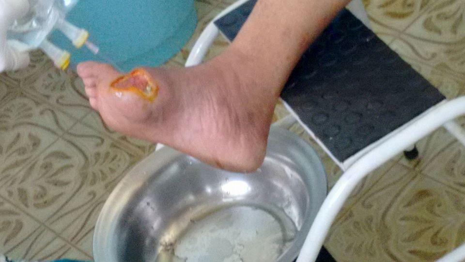 O Irmão Ciro, devido uma grave diabete, teve por necessidade amputar o dedão do pé direito.